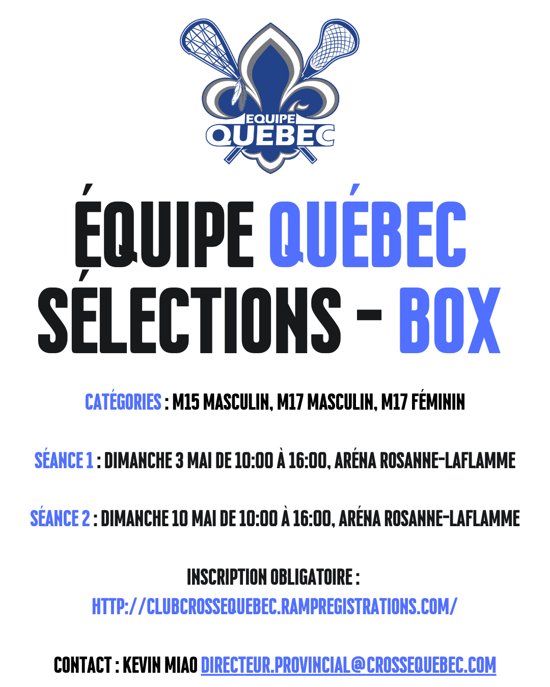 🎯 Ces camps permettront d’identifier les athlètes qui formeront les équipes du Québec pour les championnats nationaux de crosse en enclos, qui auront lieu du 8 au 16 août 2026 à Halifax